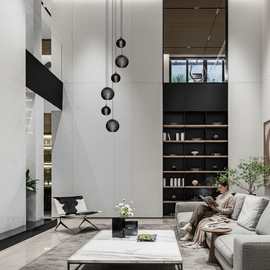 Lustre Pendente Para Sala Pé direito Duplo Multi Focus Preto