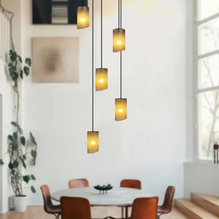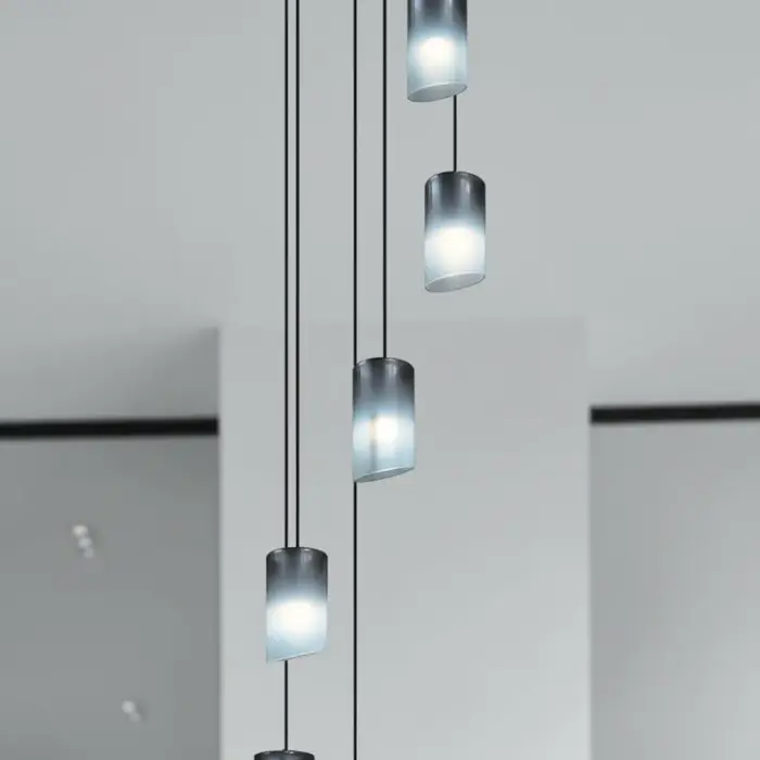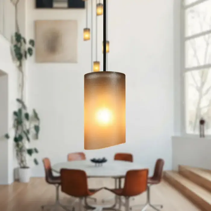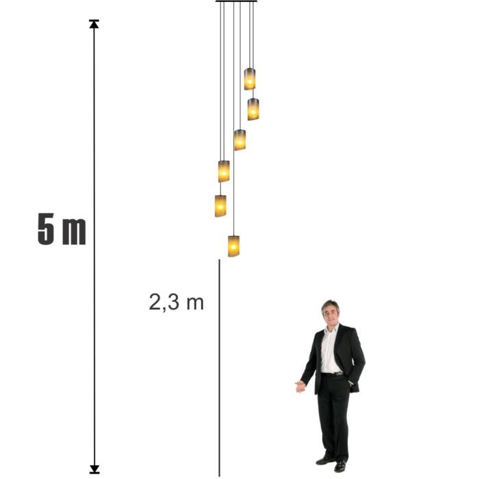 Elegante e sofisticado, esse é o Lustre para sala Cúpula Fumê 6 lâmpadas pé direito alto. Ideal para pé direito a partir de 3,4 metros, podendo ser instalado até 6,5 metros de altura.