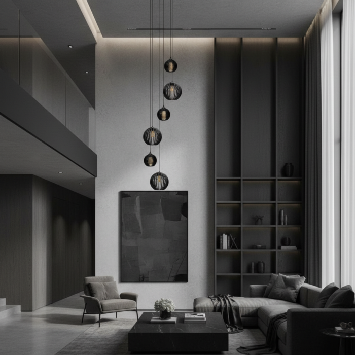 Lustre Pendente Para Sala Pé direito Alto 5m MBM – Preto