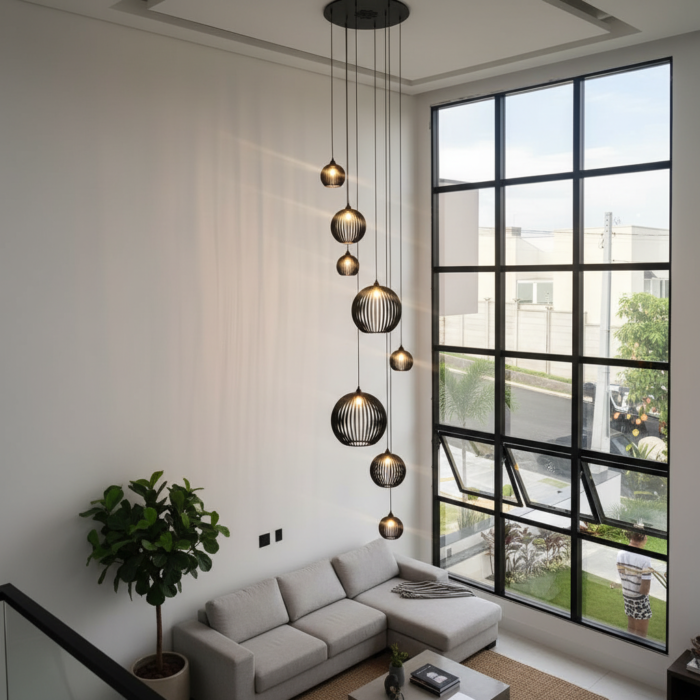 Lustre Pendente Para Sala Pé direito Duplo Mix Ball P7 – Preto