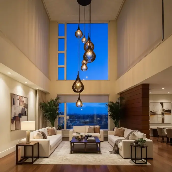 | Indicado para... | Hall de entrada, Sala pé direto alto, Mesa de jantar pé direito alto, Escadaria com vão duplo |
