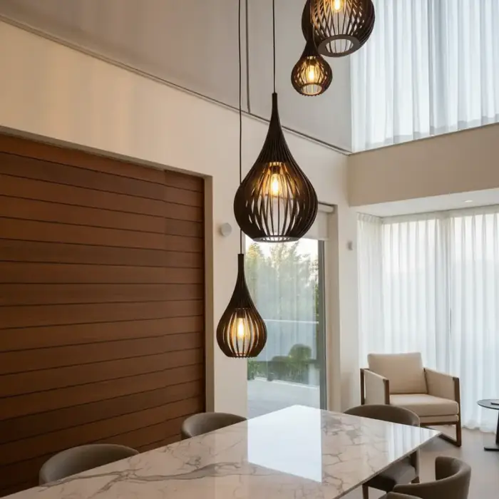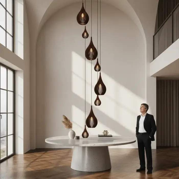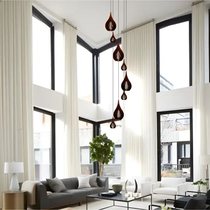 Lustre Pendente Para Sala Pé direito Duplo SP-Rain Marrom